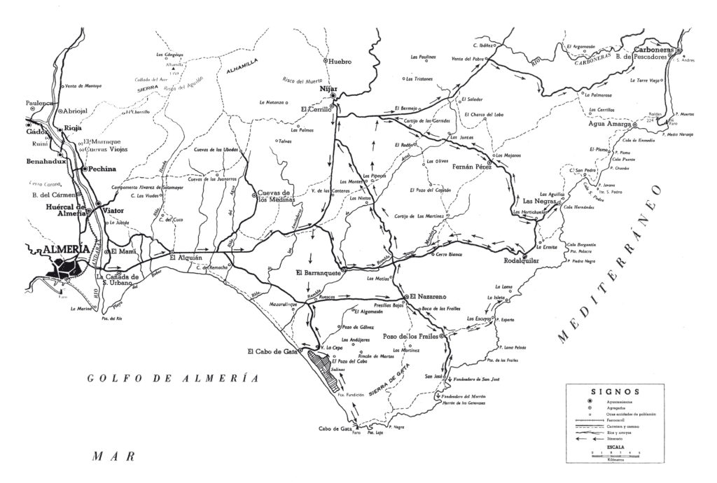 De weg loopt tussen de zoutmoerassen en het strand, overgeleverd aan de genade van zon en wind. De bergen van Gata komen dichterbij en onderbreken het landschap met hun grote gevaarte. Aan hun voeten, op een kwartier lopen, bevindt zich een derde dorp: La Fabriquilla, even armzalig en vervallen als de vorige, met straten vergeven van hongerige honden en kinderen die schreeuwend rondrennen en door waterplassen rollen.